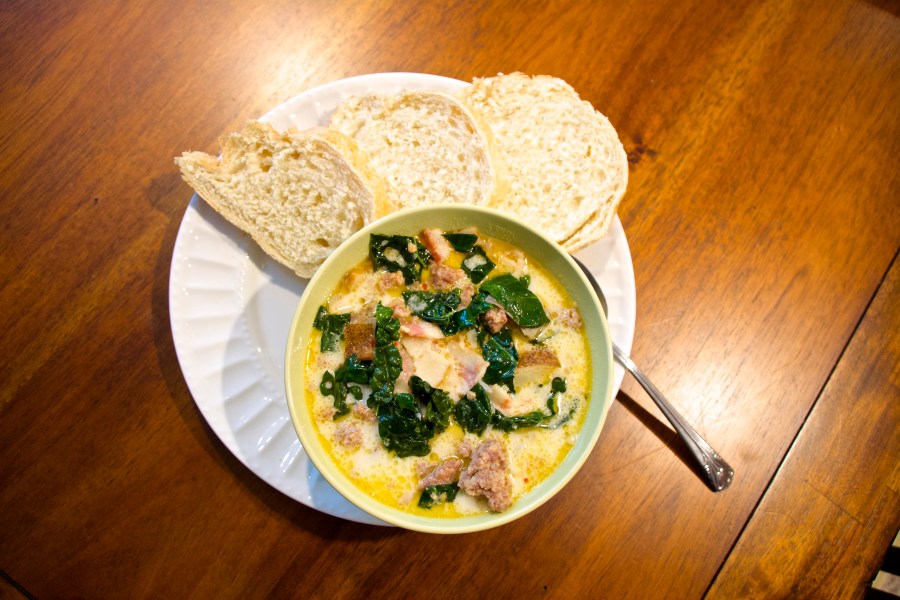 Rub the roast liberally in the spice mixture and put in an oven safe pan (I use my cast-iron skillet). Pop in the oven at 400 degrees for 15 mins, then turn it down to 325 and pour 1/3 cup dry white wine over the roast to deglaze the pan, and pop it back in. Check the roast about every 15 mins, if the pan is dry then add another 1/3 cup wine; if not, baste the roast in the juices in the pan. Do that every 15 mins until the roast reads 135 degrees on a meat thermometer (with resting it will hit 145, which is the suggested temp for pork) and has a nice crisp layer on the top. Take the roast out and place on a cutting board to rest. While that’s happening, put the pan with the drippings on the stove at medium heat. Add in 1/2 cup chicken stock and simmer until thick, making sure to scrape the bottom of the pan to get up all the delicious brown bits. Once that’s done, slice up the roast in about 1/3″ slices, serve over some type of grain and drizzle the sauce over the top.
